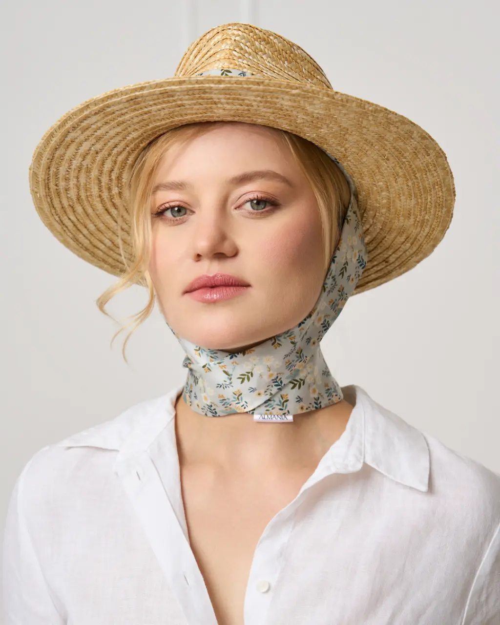 Naturalne materiały - 100% słoma i 100% jedwab morwowy zapewniają oddychalność i komfort noszenia.