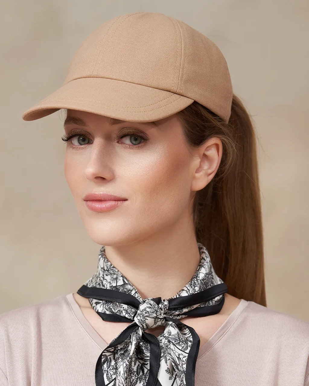 Czapka z daszkiem i otworem na kucyk - piaskowy beż